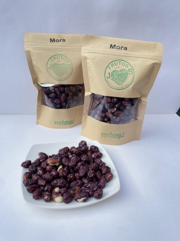 El maní es un alimento rico en antioxidantes y ayuda a la construcción del musculo, reduce el colesterol malo, contiene ácido oleico que ayuda a la prevención de enfermedades cardiovasculares. El sabor Mora, nos hace memorar esos recuerdos de infancia cuando sacábamos y comíamos mora, son muy buenos estos maníes, simplemente disfruta su sabor y hablamos, Pero con cuidado recuerda que este es confitado, por lo tanto, su consumo es alto en calorías y azucares.