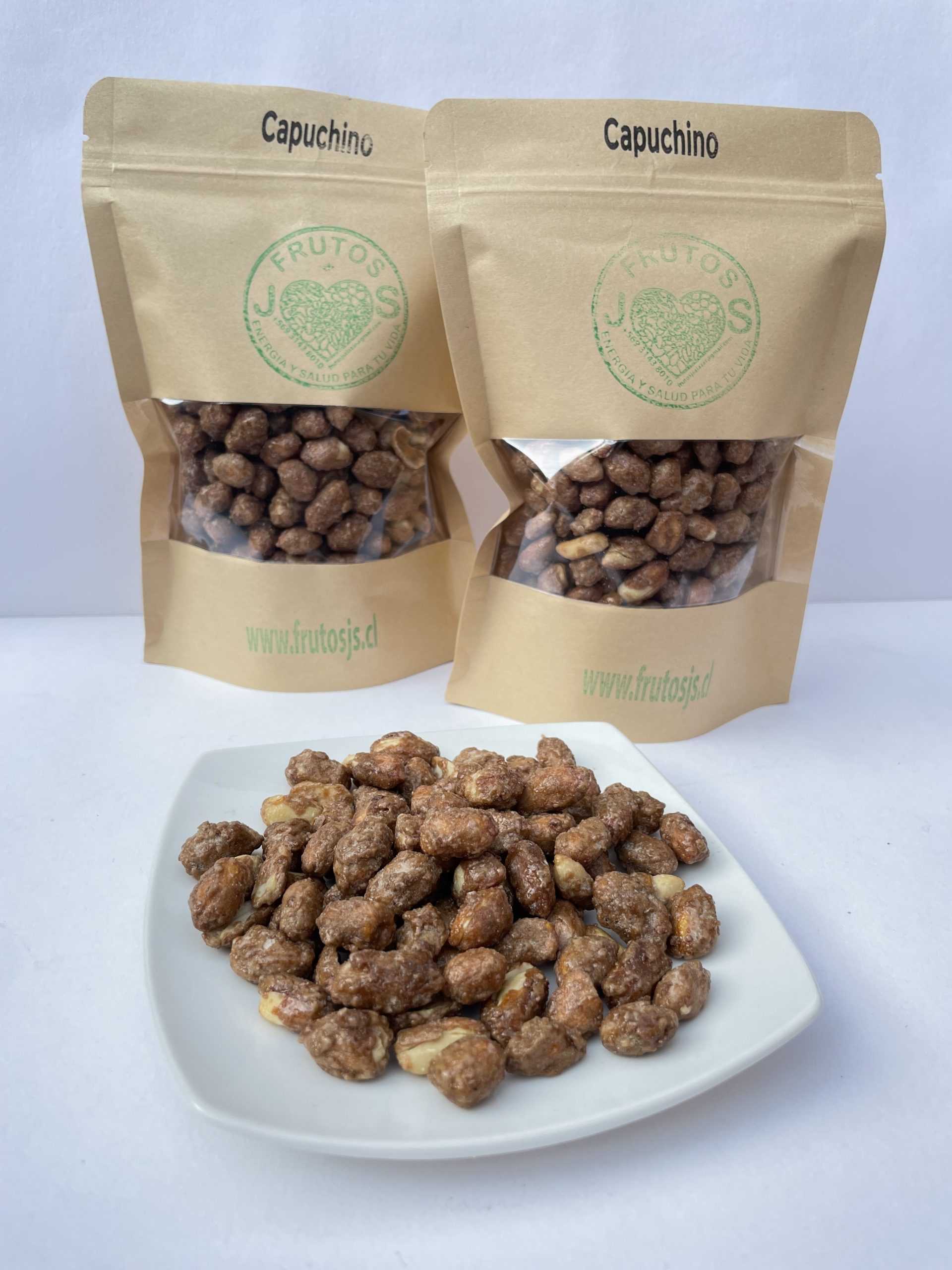 El maní es un alimento rico en antioxidantes y ayuda a la construcción del musculo, reduce el colesterol malo, contiene ácido oleico que ayuda a la prevención de enfermedades cardiovasculares. El sabor capuccino es un agradable sabor al café pareciera que un tu boca deja esa sensación de estar tomándose un Capuccino , simplemente exquisito, Pero con cuidado recuerda que este es confitado, por lo tanto, su consumo es alto en calorías y azucares. . Será su placer culpable.