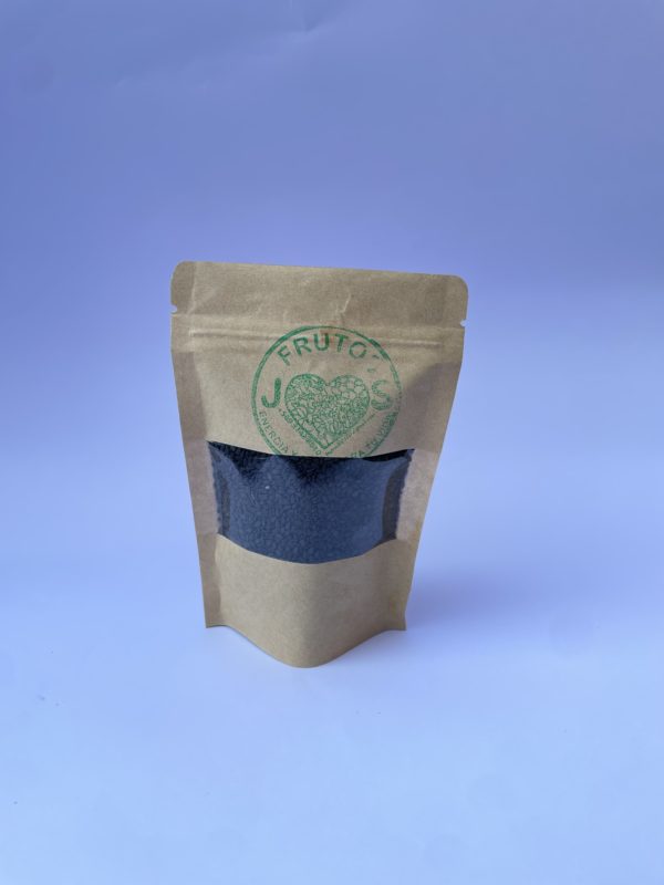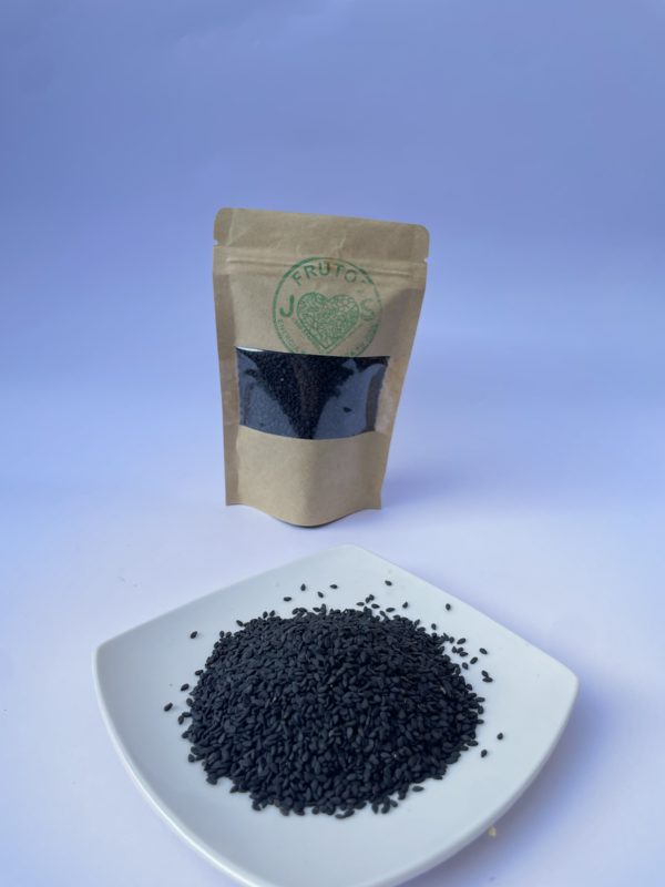 La diferencia con el sésamo blanco es que este es un poco más aceitoso y se cultivó primero, pero ambos son una semilla rica en calcio, reemplaza el calcio de los productos lácteos si tienes problemas, destaca también por disminuir la concentración de triglicéridos y la presión arterial, aporta 15 aminoácidos esenciales destacando la metionina, tiene vitaminas B1y B3, fortalece el sistema nervioso y digestivo, también es considerado un súper alimento.